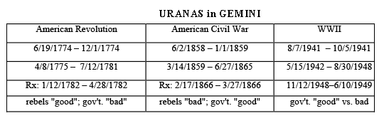 URANUS In GEMINI: THE AMERICAN REVOLUTION; The AMERICAN CIVIL WAR; WW II